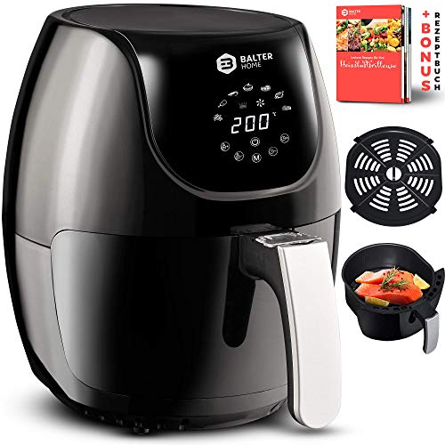 Balter Heißluftfritteuse XL-Touch, Fritteuse, LCD Display, 7 Programme, Rezeptheft, 3.6L - XL Garraum, 1500W, schwarz